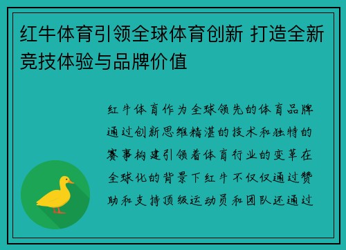 红牛体育作为全球领先的体育品牌,通过创新思维、精湛的技术和独特的赛事构建,引领着体育行业的变革。在全球化的背景下,红牛不仅仅通过赞助和支持顶级运动员和团队,还通过自主创办赛事,打造了全新的竞技体验,为全球体育领域带来了深远的影响。本文将从四个方面详细探讨红牛如何引领全球体育创新,打造全新竞技体验与品牌价值:一是通过跨界合作与资源整合,推动体育创新;二是通过技术应用,提升赛事体验与观众参与度;三是通过独特的赛事策划与内容打造,满足多样化的观众需求;四是通过品牌形象的塑造和全球化战略,提升品牌价值。通过这些努力,红牛体育成功实现了从品牌推广到体育文化的全方位扩展。